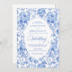 Make a refined first impression with this wedding invitation featuring classic French toile de jouy roses in elegant shades of navy blue, royal blue, dusty blue, and deep blue. Inspired by timeless European floral design, this invitation blends traditional sophistication with modern elegance, perfect for a classic, romantic, or formal wedding celebration.