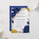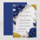 Convite Elegant Navy Blue Roses & Gold Glitter Wedding