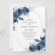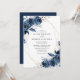 Convite Elegant Navy Blue Silver Geometric Floral Wedding