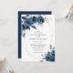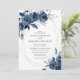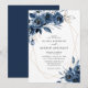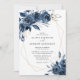 Convite Elegant Navy Blue Silver Geometric Floral Wedding