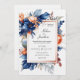 Convite Elegant Navy Blue Terracotta Floral Boho Wedding