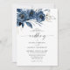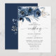 Convite Elegant Navy Blue Watercolor Floral Wedding