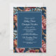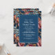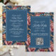 Convite Elegant Navy Floral Teal RSVP QR code Wedding