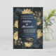 Convite Elegant Navy Gold Floral Wedding Invitation