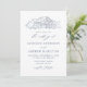 Rustic wedding invitations with a navy sketched illustration of a barn displayed at the top of the invite on a white background. The barn wedding invitations feature elegant navy calligraphy elements throughout the design. Personalize the navy wedding invites with your names and wedding details.