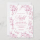 Invite guests to celebrate with this elegant bridal shower invitation featuring classic French toile de Jouy roses. Soft dusty pink, blush, and pink and white floral patterns create a romantic vintage look, beautifully accented with refined rose gold details. Professionally printed by Zazzle, this design delivers crisp text, rich color, and a smooth, premium finish that highlights every rose and floral detail. Perfect for a timeless, floral, or classic bridal shower theme, this invitation is fully customizable and arrives polished, photo-ready, and ready to impress your guests.
