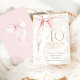 Elegant pink bow 40th birthday invitation. Feminine design in blush pink and gold. Features trendy watercolor coquette bow, and modern typography font. Perfect for an elegant style women's bday celebration. Personalize with your own details. Printed Zazzle invitations or instant download digital printable template.