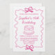 Convite Elegant Pink Bow & Cake Sweet 16 Birthday Party