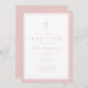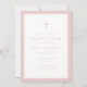 Elegant Pink Cross Baby Girl Baptism Invitation.