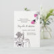 "A beautiful and minimalist wedding invitation with delicate pink floral illustrations and elegant line art.