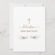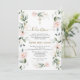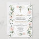 Charming Greenery Pink Flowers Gold Cross Baptism card design featuring delicate watercolor pink, blush flowers, green gold leaves, faux gold cross, on transparent background. Use Personalise tool to add your info. For matching items, please, visit my Transparent Dedication Collection.