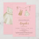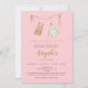 Celebrate your little one’s blessing with this sweet and sophisticated Aqiqah invitation. Featuring a delicate pink pastel background, gold-toned typography, and a charming illustration of hanging baby clothes. Fully customizable for your daughter's special day.