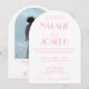 Convite Elegant Pink Minimalist Wedding Photo Arched