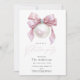 An elegant Christmas party invitation featuring a watercolor pearl ornament wrapped with a soft pink bow. A refined and feminine holiday design that’s perfect for hosting festive gatherings. Personalize all event details with ease.