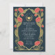 Capture timeless elegance with this Art Nouveau-inspired invitation! Featuring pink peonies, leaves against a blue background, this design sets the tone for a sophisticated celebration. Please note that the gold on this product is NOT real foil; it is printed flat.