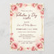 The design features a lush border of watercolor soft pink roses and delicate greenery, accented by a modern gold geometric frame. Whimsical details like floating gold stars and soft pink hearts add a festive touch, while the stylish script typography gives it a sophisticated finish.