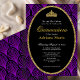 This elegant purple and black art deco quinceanera invitation has purple arches, a gold tiara crown, and a gold glitter oval with a personalizable template to create your own message. The invitation template is customizable in the listing editor and is also available as a digital download that's printable after you personalize it.