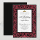 This elegant 18th birthday invitation has red glitter scrollwork, a gold tiara crown, and a black background with a personalizable template to create your own message. The invitation template is customizable in the listing editor and is also available as a digital download that's printable after you personalize it. The formal design is a classic way to set an elegant tone for your milestone birthday celebration.