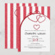 Convite Elegant Red Chalk Stripe Triple Hearts Baby Shower