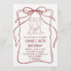 Convite Elegant Red Line Art Bow & Champagne 30th Birthday