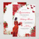 Celebrate a milestone in style with this elegant Quinceañera invitation featuring a young woman in a stunning red dress surrounded by roses and butterflies. Perfect for honoring a special 15th birthday, this beautifully designed card sets the tone for a memorable evening. With bold typography and floral accents, its ideal for family gatherings, formal celebrations, and unforgettable parties. Customize with your event details to create a keepsake guests will cherish.