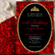 This elegant red and black floral 18th birthday debut invitation has red roses, a gold tiara crown, and a gold glitter oval with a personalizable template to create your own message. The invitation template is customizable in the listing editor and is also available as a digital download that's printable after you personalize it. The back is covered in red roses to set a formal tone for your event.