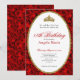 This elegant red floral 18th birthday debut invitation has red roses, a gold tiara crown, and a gold glitter oval with a personalizable template to create your own message. The invitation template is customizable in the listing editor and is also available as a digital download that's printable after you personalize it. The back has red roses covering the entire surface to create and classic and classy mood for your event.
