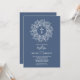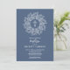 Stylish blue and white baptism invitations feature a cross surrounded by a wreath of leaves and your details in chic lettering. MATCHING items available in our collection.