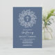 Stylish blue and white christening invitations feature a cross surrounded by a wreath of leaves and your details in chic lettering. MATCHING items available in our collection.