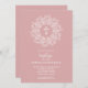 Stylish pink and white girl baptism invitations feature a cross surrounded by a wreath of leaves and your details in chic lettering. MATCHING items available in our collection.
