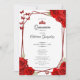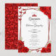 This elegant red quinceanera invitation has a red tiara crown, red roses, and red butterflies with a personalizable template to create your own message. The invitation template is customizable in the listing editor and is also available as a digital download that's printable after you personalize it. The back has red roses covering it in a draping pattern.