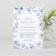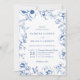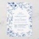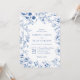 Convite Elegant Royal Blue Floral Garden QR Code Wedding