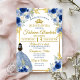 Convite Elegant Royal Blue & Gold Rose Quinceañera