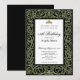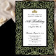 This elegant 18th birthday invitation has sage green glitter scrollwork, a gold tiara crown, and a black background with a personalizable template to create your own message. The invitation template is customizable in the listing editor and is also available as a digital download that's printable after you personalize it. The formal design is a classic way to set an elegant tone for your milestone birthday celebration.