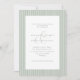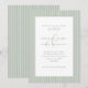 Elegant Sage Green and White Stripes Wedding Invitation with statement ampersand in the background.