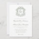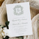 This elegant sage green and white monogram wedding invitation features an ornate crest with interlocked fancy script calligraphy for the initials of the bride and groom and the names. Find matching products in the collection, or message me through Zazzle Chat for more products and design tweaks.