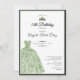 This elegant sage green and black 18th birthday debut invitation has a dress, a sage tiara crown, and a black border with a personalizable template to create your own message. The invitation template is customizable in the listing editor and is also available as a digital download that's printable after you personalize it. The pretty and minimalist design is nice for a formal event to celebrate a milestone birthday.
