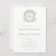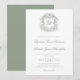 This elegant sage green and white monogram wedding invitation features an ornate crest with interlocked fancy script calligraphy for the initials of the bride and groom and the names, in classic black and white. Find matching products in the collection, or message me through Zazzle Chat for more products and design tweaks.