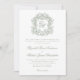 This formal sage green monogram wedding invitation features an elegant vintage monogram crest with fancy script calligraphy for the initials of the bride and groom, and the names. Find matching products in the collection, or message me through Zazzle Chat for more products and design tweaks.