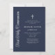 Elegant Script Navy Blue Boy First Communion Invitation.