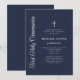 Convite Elegant Script Navy Blue Boy First Communion