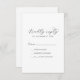 This elegant script printable or printed RSVP card is perfect for a simple wedding. The minimalist black and white design features fancy romantic typography with modern glam style. Customizable in any color. Keep the design minimal and classy, as is, or personalize it by adding your own graphics and artwork.