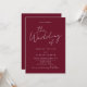 Convite Elegant Script QR Code Burgundy White Wedding
