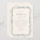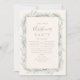 An elegant and serene Christmas design featuring watercolor pine branches in soft silver-blue tones framing a minimalist cream background. The neutral palette and refined typography create a sophisticated winter aesthetic — perfect for modern celebrations with timeless charm.