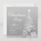 Elegant Winter Xmas Dinner Party Invitation template with Silver Christmas tree with bow and lights. Impress your friends with this sophisticated and modern invitation design.