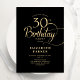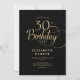Convite Elegant Simple Black Gold Script 30th Birthday