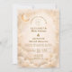 A refined celestial design featuring delicate crescent moons, scattered constellation stars, and a warm parchment-toned background. A thin gold border frames the layout, while elegant typography creates a timeless, sophisticated composition. The subtle vintage texture and balanced spacing give this piece a romantic, storybook feel without overwhelming the details. Perfect for couples who love classic elegance with a soft cosmic touch.
