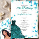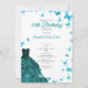 Convite Elegant Teal Butterflies Dress 18th Birthday Debut