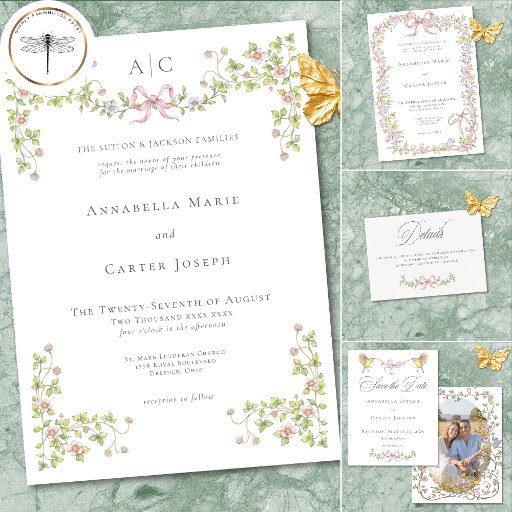 Convite Elegant Victorian Pastel Floral Bow Wedding