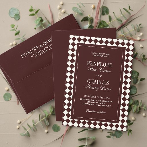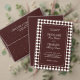 Convite Elegant Vintage Burgundy Checkered Formal Wedding